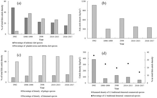 | Species | The Proportion of Total Catch Density of Fish % | ||||