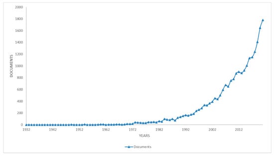 Publication trend (1932–2021) of the seafood/fish/nutrient/bioactive compound search. (Based on data from Scopus).