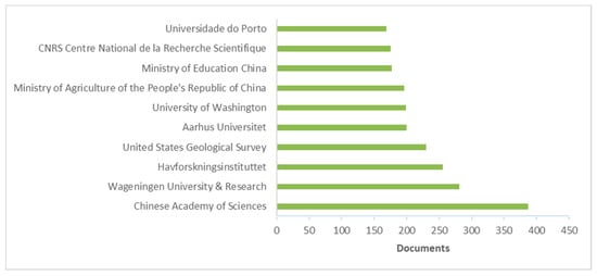 The most productive institution is the Chinese Academy of Sciences (n = 387). All of the 10 highest-ranked institutions contributed with at least 169 publications.