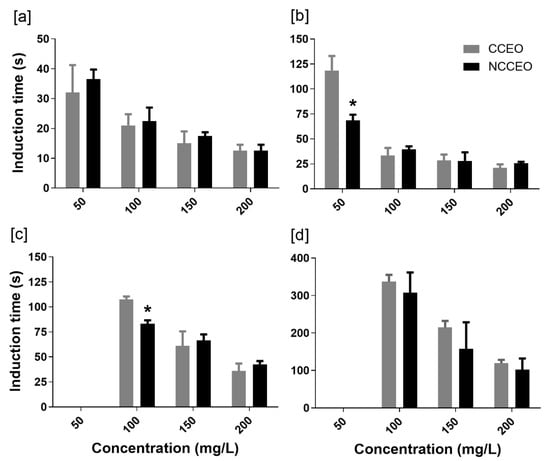 - Volpato, A.; Baretta, D.; Zortéa, T.; Campigotto, G.; Galli, G.M.; Glombowsky, P.; Silva, A.S. Larvicidal and insecticidal effect of Cinnamomum zeylanicum oil (pure and nanostructured) against mealworm (Alphitobius diaperinus) and its possible environmental effects. J. Asia-Pac. Entomol. 2016, 19, 1159–1165. [Google Scholar] [CrossRef]