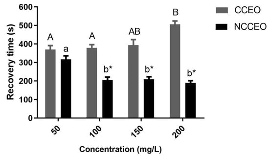 2.2. Quantification of Phytochemicals in EOs and Preparation of CCEO Nanoemulsion