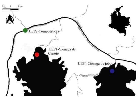 The biological material was sacrificed and identified in situ using the field guide Colombian Andean Fish and the Catalogue of Continental Fishery Resources of Colombia [31,34]. Eighty C. kraussii specimens were analyzed from three locations being studied: UEP1—Ciénaga de Capote; UEP2—Canal del Dique/Compuerticas; and UEP4—Ciénaga del Jobo/San Cristóbal) (See Figure 1). There were 47 females and 33 males, the sex of which was determined by direct observation of gonads [35].