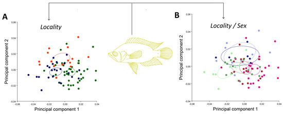 5. Herler, J.; Kerschbaumer, M.; Mitteroecker, P.; Postl, L.; Sturmbauer, C. Sexual dimorphism and population divergence in the Lake Tanganyika cichlid fish genus Tropheus. Front. Zool. 2010, 7, 1–10. [Google Scholar] [CrossRef] [PubMed]
