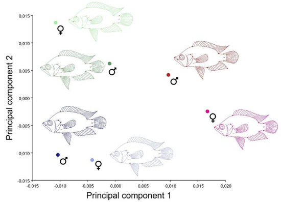 In addition, it is important to mention that there have been very few sexual shape dimorphism studies using geometric morphometrics. In fish, the sexual dimorphism of shape was studied in Tule perch, Hysterocarpus traskii, and significant differences in perch shape were found using GM [61]. Another study was conducted by Saura et al. [62], who, by means of GM, evaluated the fluctuating asymmetry and sexual dimorphism in Channa striata individuals; these groups are clear examples of studies where the combination of high-resolution morphological tools was able to unravel traits in the life history of organisms.