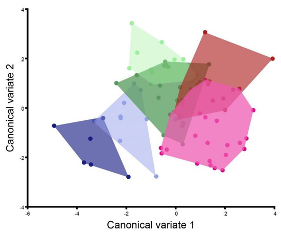To determine the existence of statistically significant differences in SShD, a permutation test was performed (10,000 permutations) using Mahalanobis distances (morphological distances resulting from a CVA). All analyses were conducted with the MorphoJ 1.07a software [46].