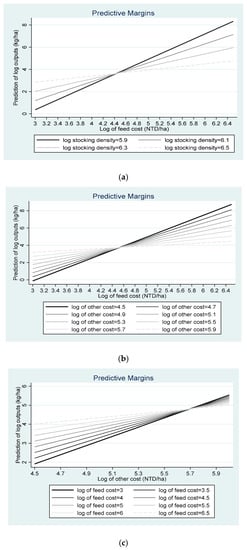 3.4. Analysis of the Economic and Biological Variables by Stocking Density and Feed Cost