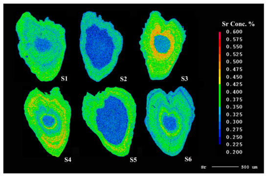 3.3. The Area Distribution Analysis of Sr Content
