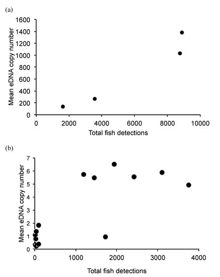 - Takahara, T.; Minamoto, T.; Yamanaka, H.; Doi, H.; Kawabata, Z.I. Estimation of fish biomass using environmental DNA. PLoS ONE 2012, 7, e35868. [Google Scholar] [CrossRef] [PubMed] [Green Version]