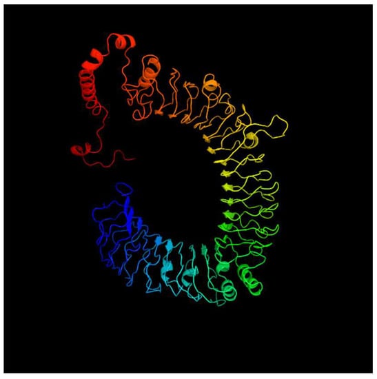 The network tool ORF-Finder was used to predict the amino acid sequences of the TLRs (https://www.ncbi.nlm.nih.gov/orffinder/, accessed on 15 July 2021). The signal peptide was predicted using the SignalP 5.0 server (http://www.cbs.dtu.dk/services/SignalP/index.php, accessed on 15 July 2021). A simple modular architecture study (SMART) (http://smart.embl-heidelberg.de/smart/set_mode.cgi?NORMAL=1, accessed on 15 July 2021) was used to predict TLR protein domains, including transmembrane regions, LRR, and TIR motifs. The ProParam software in the ExPasy server (https://web.expasy.org/protparam/, accessed on 15 July 2021) was used to predict the physical and chemical properties of the protein, including molecular weight, theoretical isoelectric point, instability index, fat index, and total average hydrophilicity. MatGAT 2.02 software (2.02, Montclair State University, Department of Biology and Molecular Biology, Montclair, NJ, USA) was used to calculate the amino acid sequence similarity [16]. The PHYRE2 server (http://www.sbg.bio.ic.ac.uk/phyre2/html/page.cgi?id=index, accessed on 18 July 2021) was used to predict and build protein 3D structure models.