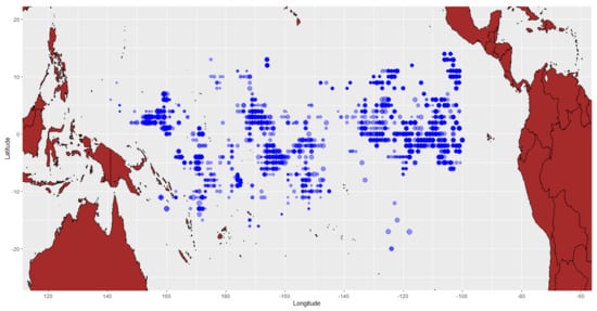 - Molony, B. Fisheries biology and ecology of highly migratory species that commonly interact with industrialized longline and purse-seine fisheries in the western and central Pacific Ocean. In Proceedings of the Fourth Scientific Committee Meeting of the Western and Central Pacific Fisheries Commission, WCPFC, Port Moresby, Papua New Guinea, 11–18 August 2008. [Google Scholar]