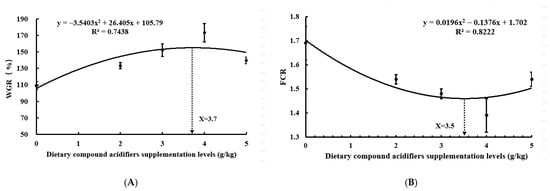 APA StyleZhang, M., Wu, X., & Zhai, S. (2022). Effect of Dietary Compound Acidifiers Supplementation on Growth Performance, Serum Biochemical Parameters, and Body Composition of Juvenile American Eel (Anguilla rostrata). Fishes, 7(4), 203. https://doi.org/10.3390/fishes7040203