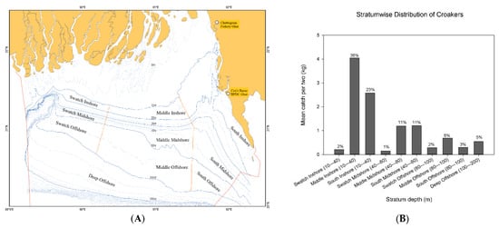 - Muktha, M.; Maheswarudu, G.; Rohit, P.; Laxmilatha, P.; Das, M.; Rao, K.N. Biology and stock assessment of the bigeye croaker Pennahia anea (Bloch, 1793) landed along Andhra Pradesh, north-east coast of India. Indian J. Fish. 2015, 62, 46–51. Available online: http://eprints.cmfri.org.in/id/eprint/10347 (accessed on 10 January 2022).
