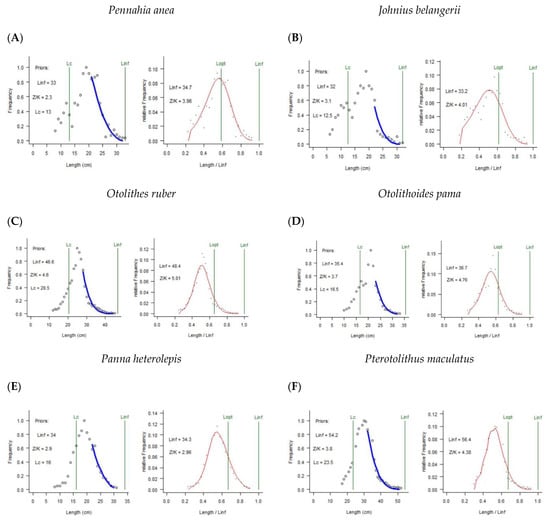 - Santhoshkumar, S.; Rajagopalsamy, C.B.T.; Jawahar, P.; Jayakumar, N.; Pavinkumar, P. Growth and mortality characteristics of Otolithes ruber (Schneider, 1801) exploited off Thoothukudi Coast, Tamil Nadu. J. Entomol. Zool. Stud. 2017, 5, 1746–1749. Available online: https://scholar.google.co.uk/scholar?hl=en&as_sdt=0%2C5&q=Santhosh+kumar%2C+S.%2C+Rajagopalsamy%2C+C.+B.+T.%2C+Jawahar%2C+P.%2C+Jayakumar%2C+N.+and+Pavinkumar%2C+P+.+2017.+Growth+and+mortality+characteristics+of+Otolithes+ruber+%28Schneider%2C+1801%29+exploited+off+Thoothukudi+Coast%2C+Tamil+Nadu.+J.+Entomol.+Zool.+Stud.%2C+5%284%29%3A+1746-1749.&btnG= (accessed on 10 January 2022).