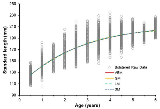 Additionally, we calculated the bias in k and L∞ of VBM through a comparison between the two- and three-parameter estimation models, following Pardo et al. [].