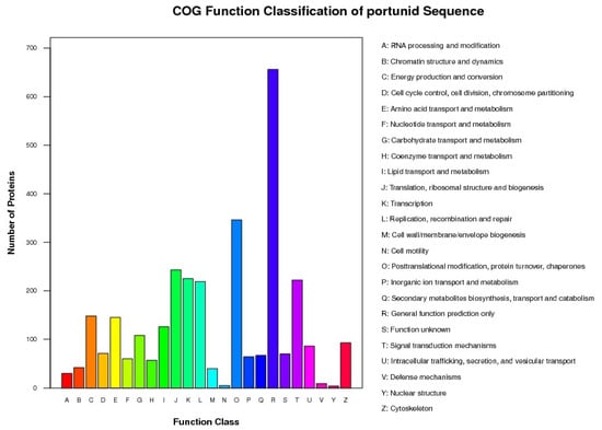 Cluster of orthologous group (COG) classification of the identified proteins in hemocytes.