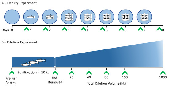 2.6. Statistical Analyses of Fish Density and Dilution Experiments