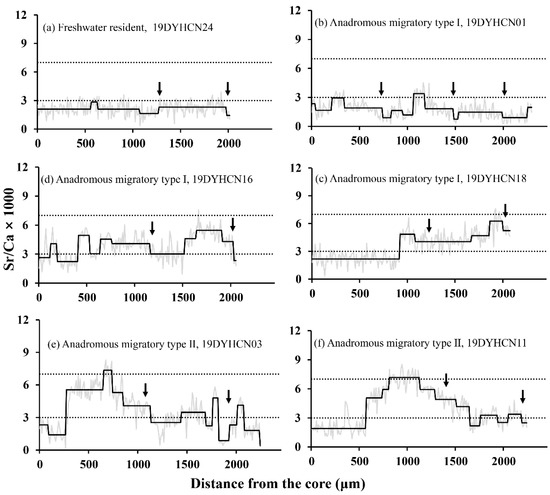 APA StyleHu, Y., Jiang, T., Liu, H., Chen, X., & Yang, J. (2022). Otolith Microchemistry Reveals Life History and Habitat Use of Coilia nasus from the Dayang River of China. Fishes, 7(6), 306. https://doi.org/10.3390/fishes7060306