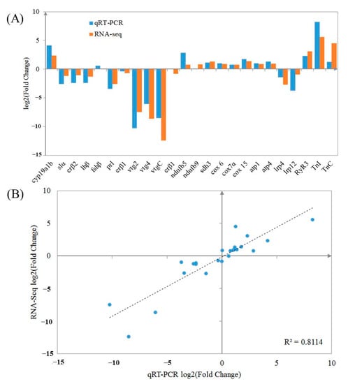 2.7. Validation of RNA-Seq Data via qRT-PCR Assay