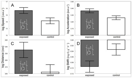 - Mattsson, K.; Ekvall, M.T.; Hansson, L.-A.; Linse, S.; Malmendal, A.; Cedervall, A.T. Altered Behavior, Physiology, and Metabolism in Fish Exposed to Polystyrene Nanoparticles. Environ. Sci. Technol. 2015, 49, 553–561. [Google Scholar] [CrossRef]