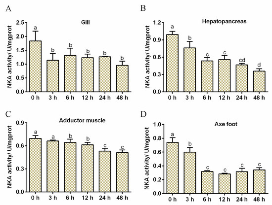 - Cai, X.; Zhang, X.; Tian, L.; Zhang, P. Effect of salinity stress on hemolymph osmolality and gill Na+/K+-ATPase activity of juvenile ark shell (Anadara broughtonii). South China Fish. Sci. 2015, 11, 12–19. [Google Scholar]