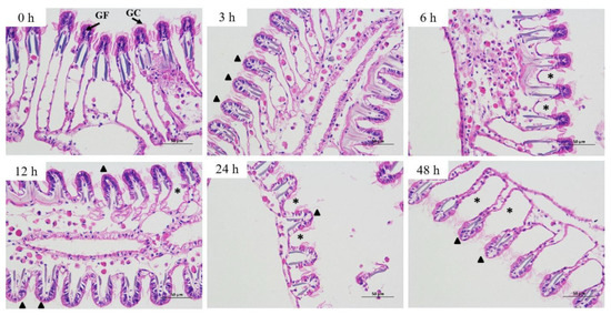 3.4. Effects of Salinity Stress on Gill Histomorphology