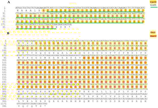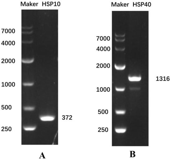 3.1. Cloning and Sequence Analysis of HSP10 and HSP40 CDS Regions of E. hepuensis