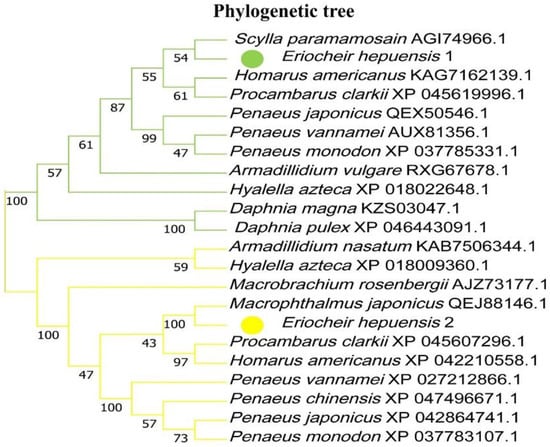 Chicago/Turabian StyleFu, Qianni, Jinxia Liu, Tianjiao Ren, Zining Zhang, Zihang Ma, Zhenyu Lan, Yitao Duan, Ziwei Liang, Boyu Chen, Yan Zhang, and et al. 2022. "Cloning of Two HSP Genes of Eriocheir hepuensis and Their Expression under Vibrio parahaemolyticus Stress" Fishes 7, no. 6: 372. https://doi.org/10.3390/fishes7060372