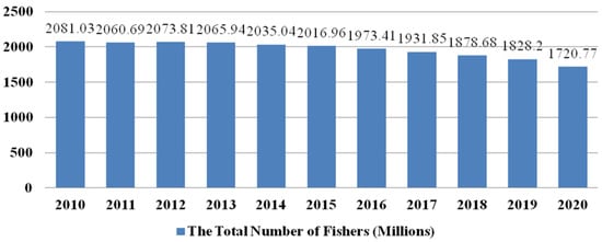Marine fisheries represent the magnitude of the sector in China in terms of numerical values. Millions of fishers have lived and worked along China’s coasts for several generations. The total number of fishers increased gradually but annually before 2010 [