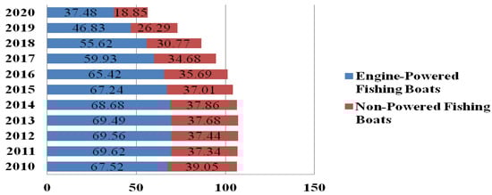 Figure 4 exhibit the year-on-year changes in the number of Chinese fishing vessels, which reflects that the aggregate of fishing vessels (engine-powered and non-powered fishing boats) has also declined over the last seven years (2014–2020) [