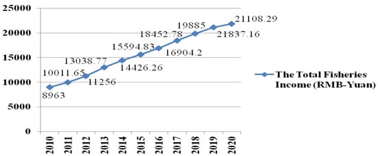 75]. Survey data projected fishers in coastal provinces and disclosed the obvious income gap between coastal and inland regions. This income difference has attracted an increasing number of regular farmers from the inland provinces to join the fishing industry along the coast. Notably, the proportions of income in fishing households also show a rising trend through the increasing efforts of varied national policies introduced to benefit fishers.