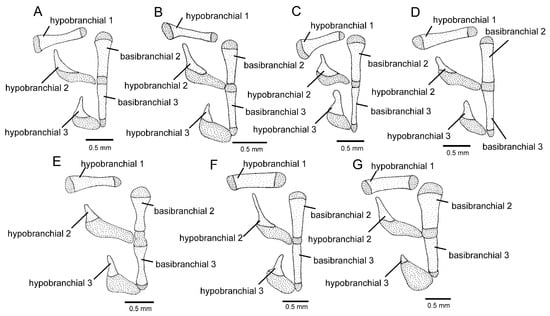 - Taylor, W.R.; Van Dyke, G.C. Revised procedures for staining and clearing small fishes and other vertebrates for bone and cartilage study. Cybium 1985, 9, 107–119. [Google Scholar]