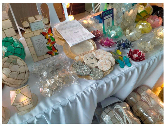 Examples of commercial products made from Capiz shells (Photograph JMR, 10 July 2023; Kaliwanag Rural Improvement Club; San Juan, Samal, Bataan, Region III, Philippines).