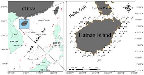 Luo, Z.; Zhou, Y.; Liu, N.; Wang, L.; Liu, Y.; Shan, B.; Liu, M.; Chen, C.; Yang, C.; Sun, D. Ecological Niche and Interspecific Association of the Main Fishes in the Coastal Waters of Hainan Island, China. Fishes 2023, 8, 511. https://doi.org/10.3390/fishes8100511
