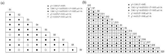 - Schluter, D. A Variance Test for Detecting Species Associations, with Some Example Applications. Ecology 1984, 65, 998–1005. [Google Scholar] [CrossRef]