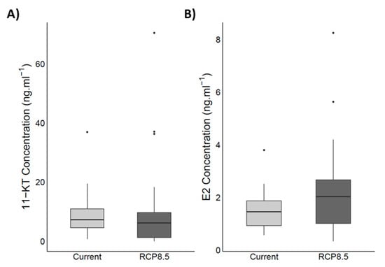 - Roufidou, C.; Schmitz, M.; Mayer, I.; Sebire, M.; Katsiadaki, I.; Shao, Y.T.; Borg, B. Hormonal Changes over the Spawning Cycle in the Female Three-Spined Stickleback, Gasterosteus aculeatus. Gen. Comp. Endocrinol. 2017, 257, 97–105. [Google Scholar] [CrossRef]