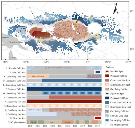 Classification of Hotspot and Coldspot Trends. The classification categories describe the patterns of hotspots and coldspots observed in the spatiotemporal analysis [34].