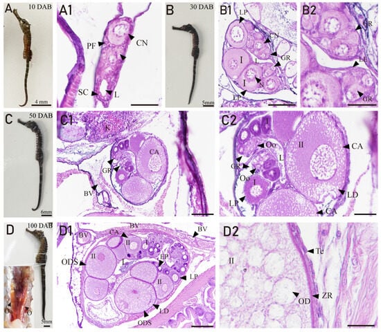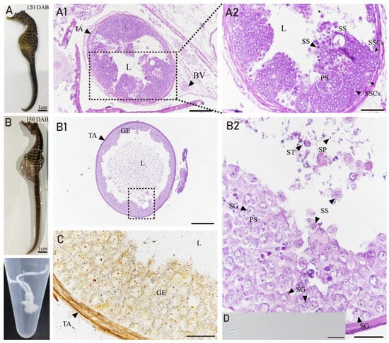 APA StyleZhang, Y., Qin, S., Liu, Q., & Wang, W. (2023). Gonad and Germ Cell Development and Maturation Characteristics of the Pot-Bellied Seahorse (Hippocampus abdominalis) under Captive Breeding Conditions in Northern China. Fishes, 8(11), 551. https://doi.org/10.3390/fishes8110551