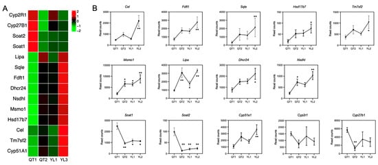 3.5. Expression Level of Genes Involved in Liver Steroid Biosynthesis