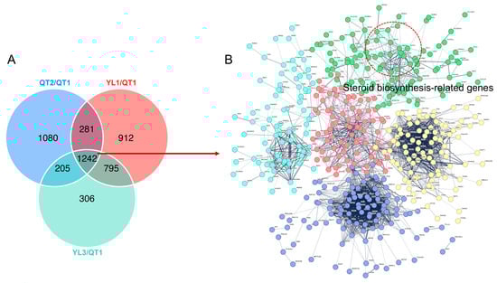 - Szklarczyk, D.; Kirsch, R.; Koutrouli, M.; Nastou, K.; Mehryary, F.; Hachilif, R.; Gable, A.L.; Fang, T.; Doncheva, N.T.; Pyysalo, S.; et al. The STRING database in 2023: Protein-protein association networks and functional enrichment analyses for any sequenced genome of interest. Nucleic Acids Res. 2023, 51, D638–D646. [Google Scholar] [CrossRef]