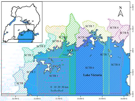 Fishing effort on Lake Victoria has been growing steadily through new entrants, technological improvements, and increased use of illegal gear, such as small mesh monofilament nets, small hooks, and beach seines, in response to the reduced availability of large fish and growing demand for fish in national, regional, and global markets [,]. Nile perch fishers, which predominantly target global export markets, must invest in larger vessels and engines to access deeper waters where the likelihood of catching legal-sized fish is better, while those using smaller paddled vessels have traditionally been fishing for domestic consumption, and local or regional markets fish close to shore using small mesh gillnets and monofilament nets. Similar trends in the development of fishing efforts have been observed in other small-scale fisheries (SSFs), classified as commercial or artisanal, respectively [,]. The FAO voluntary guidelines for small-scale fisheries, the FAO code of conduct for responsible fisheries, and the United Nations’ Sustainable Development Goal 14 highlight the need to increase economic benefits while protecting the access rights of artisanal small-scale fishers []. However, it is difficult to reconcile increased economic benefits while preserving access rights in some inland fishing nations, such as Uganda, where economic growth and development is a key agenda in the productive sectors.