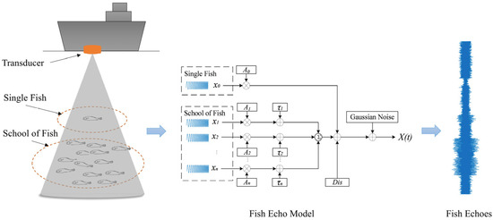 The fish echo signals collected by the hydroacoustic transducer usually include four parts: single fish echoes, overlapping echoes, reverberation, and random noise, and the total target echo signals can be written as: