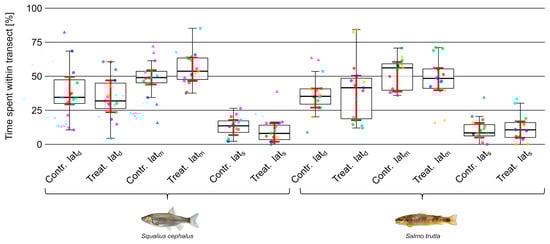 Kowal, J.L.; Auer, S.; Schmutz, S.; Graf, W.; Wimmer, R.; Tonolla, D.; Meulenbroek, P. Does Soundpeaking Affect the Behavior of Chub (Squalius cephalus) and Brown Trout (Salmo trutta)? An Experimental Approach. Fishes 2023, 8, 581. https://doi.org/10.3390/fishes8120581