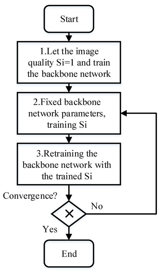 Step 2: Here, the feature extraction model (M) is fixed, and the quality assessment module is incorporated into the training process. The loss function used in this step is given by Formula 6. The main goal is to learn the relevant gradients within the quality assessment module.