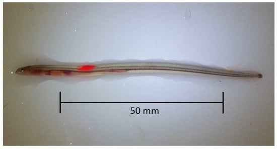 - Imbert, H.; Beaulaton, L.; Rigaud, C.; Elie, P. Evaluation of Visible Implant Elastomer as a Method for Tagging Small European Eels. J. Fish Biol. 2007, 71, 1546–1554. [Google Scholar] [CrossRef]