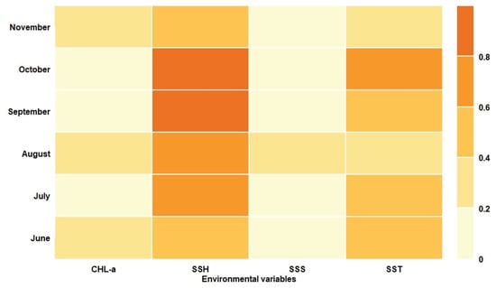 | Environmental Variables | SST | SSH | SSS | Chla |