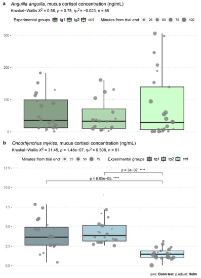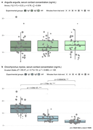 - Sadoul, B.; Geffroy, B. Measuring Cortisol, the Major Stress Hormone in Fishes. J. Fish Biol. 2019, 94, 540–555. [Google Scholar] [CrossRef] [PubMed]
