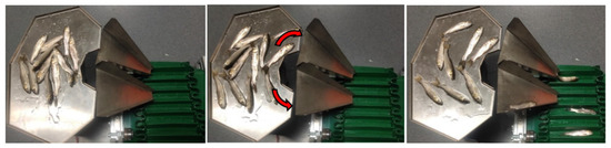 - Zhang, M. Ordered Arrangement Device for Fish. CN105752659A. 2016. Available online: https://worldwide.espacenet.com/patent/search/family/056324217/publication/CN105752659A?q=CN105752659A&queryLang=en%3Ade%3Afr (accessed on 3 January 2023).