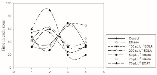 | Crossings between the tank zones | Numbers of crossings of the animal between the different zones of the aquarium. | |