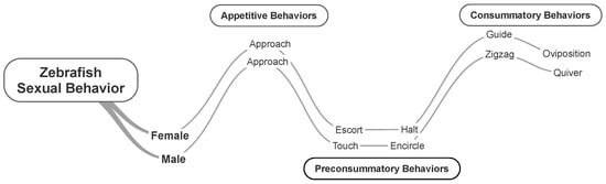 Velázquez-Landa, X.; Carrillo, P.; Coria-Avila, G.A.; Herrera-Covarrubias, D.; García, L.I.; Toledo-Cárdenas, M.R.; Hernández-Aguilar, M.E.; Manzo, J. Zebrafish Sexual Behavior in Plain and Enriched Environments: Parameters in the Valproate Model of Autism. Fishes 2023, 8, 156. https://doi.org/10.3390/fishes8030156