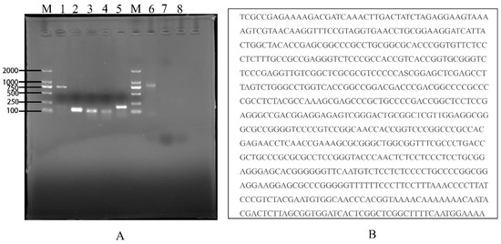 Figure 4. Multi-gene identification and detection of mycoplasma contamination. 18S rRNA amplification and mycoplasma testing (A) M: DL2000 DNA marker; Lanes 1: 18S rRNA (691 bp); Lanes 2: β-actin (115 bp); Lanes 3: myoglobin (112 bp); Lanes 4: troponin I (106 bp); Lanes 5: α-actin (184 bp); Lanes 6: Positive control; Lanes 7: Negative control; Lanes 8: TAH-11 cell supernatant; (B) sequencing results of the 18S rRNA amplification.